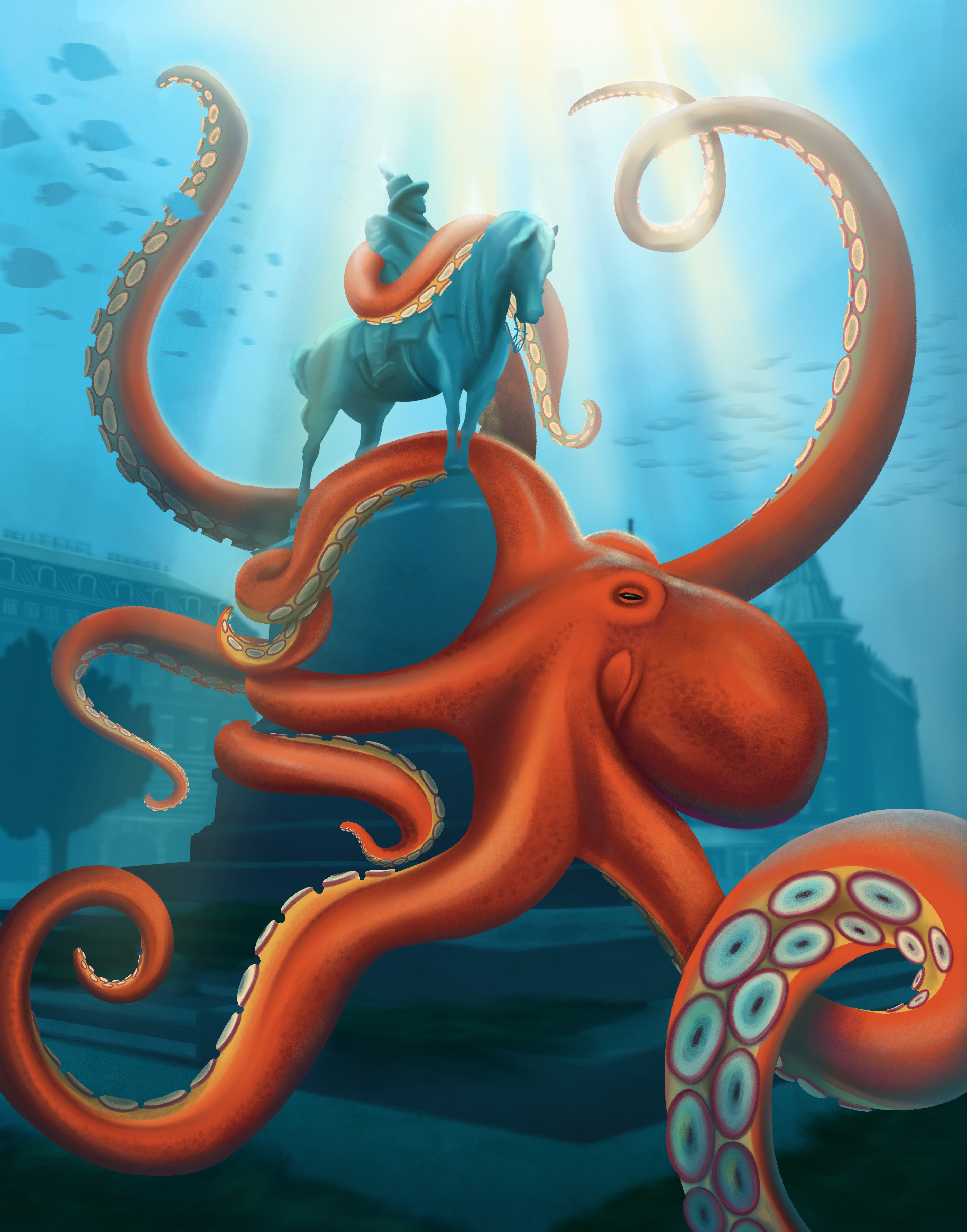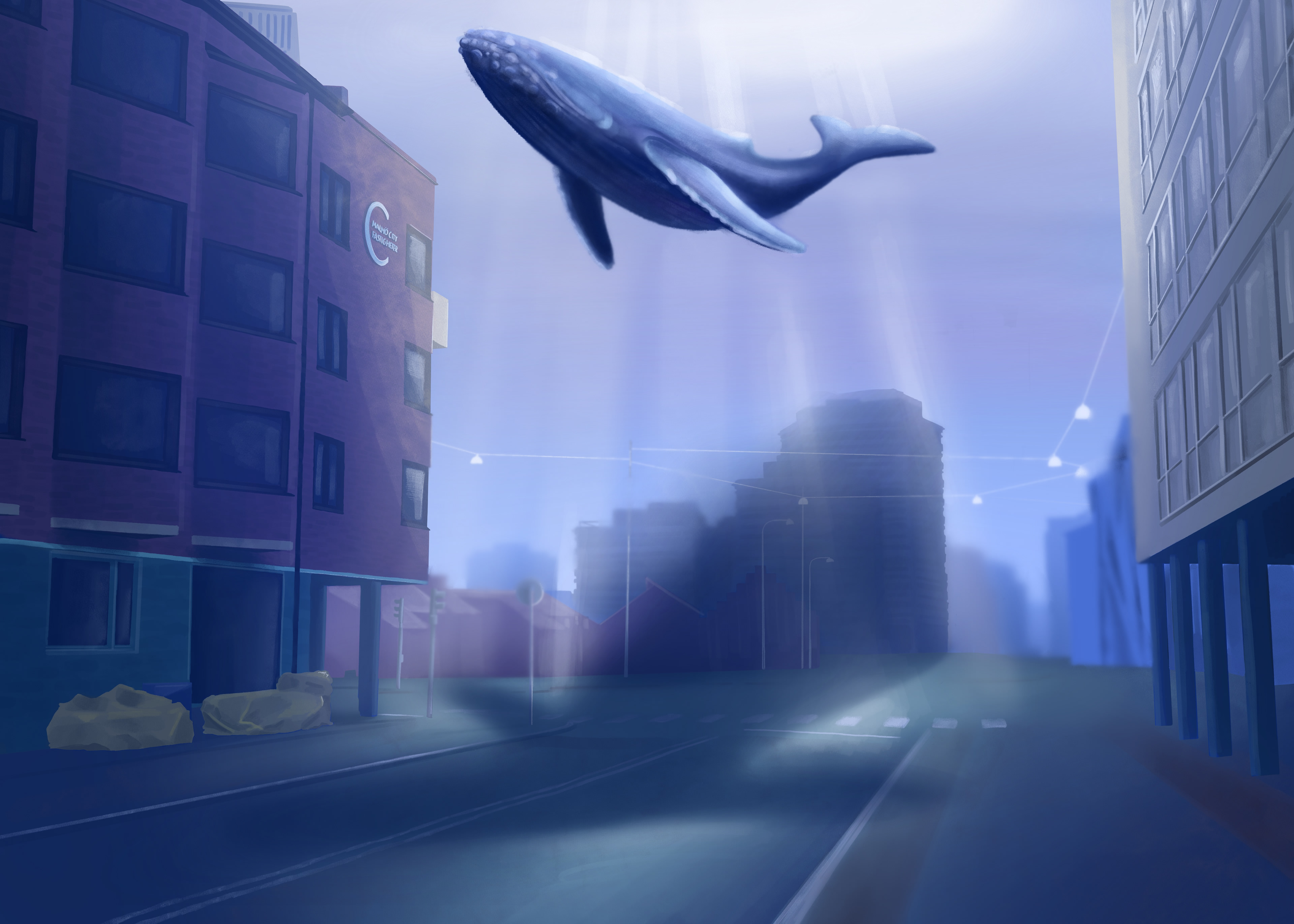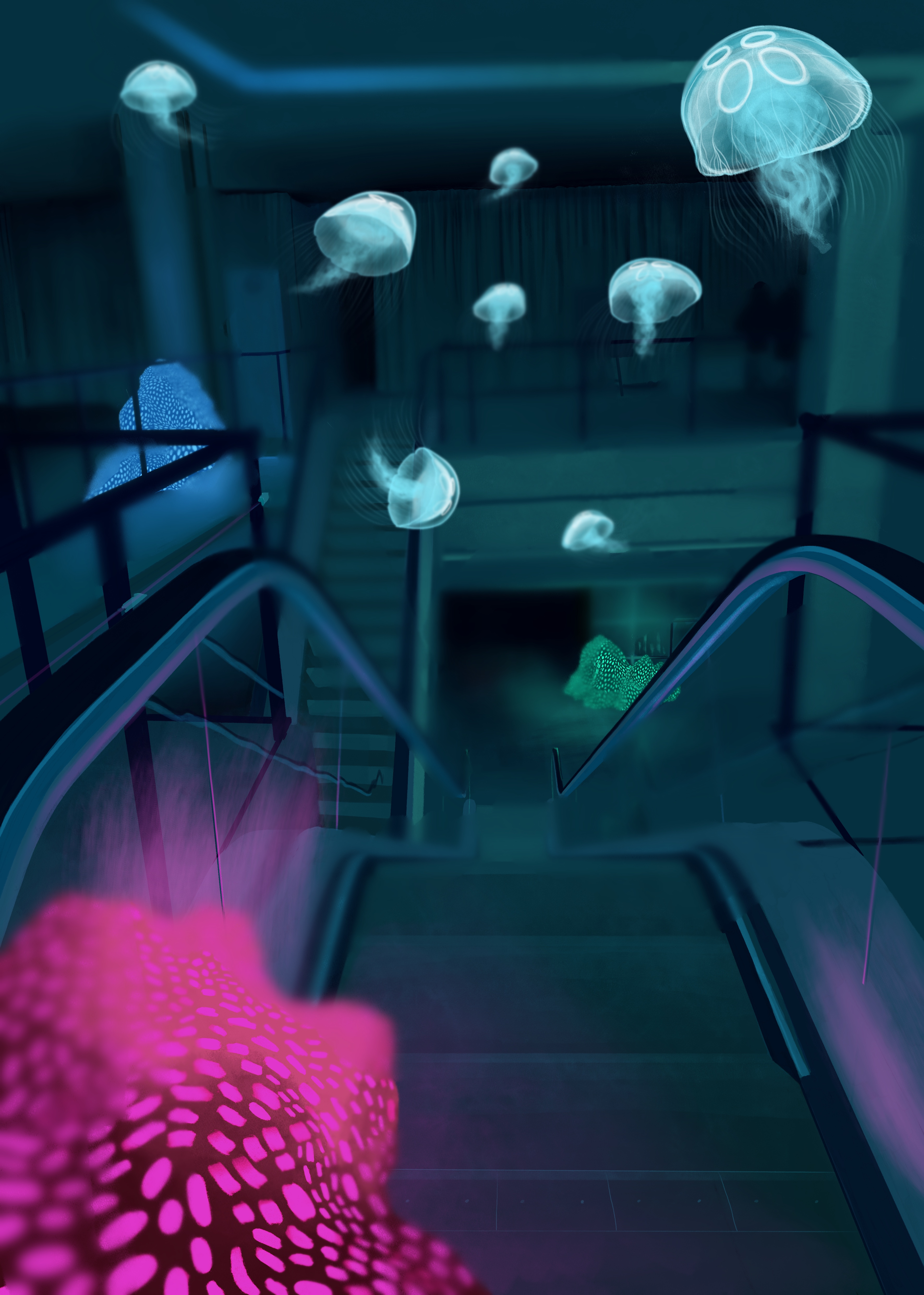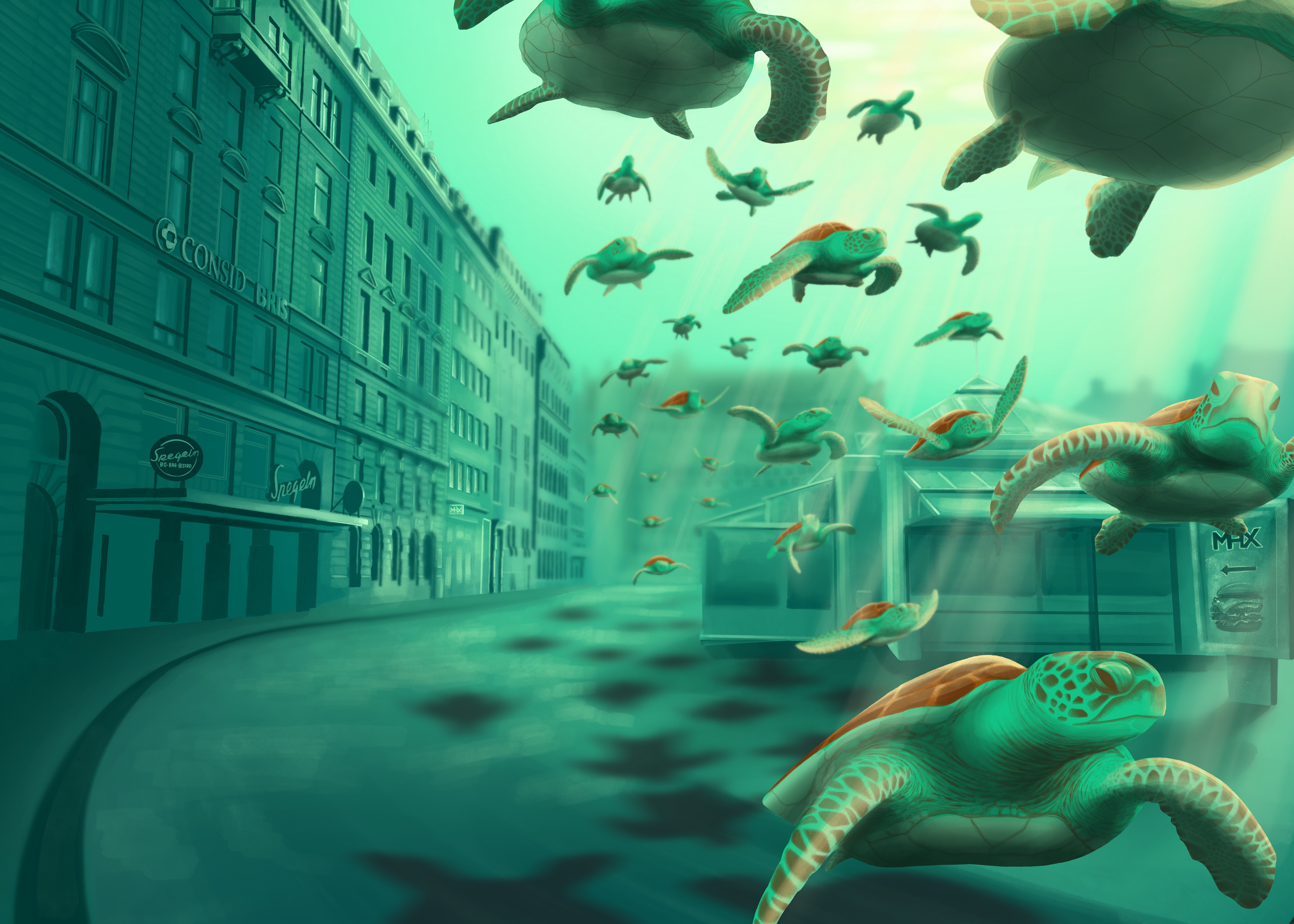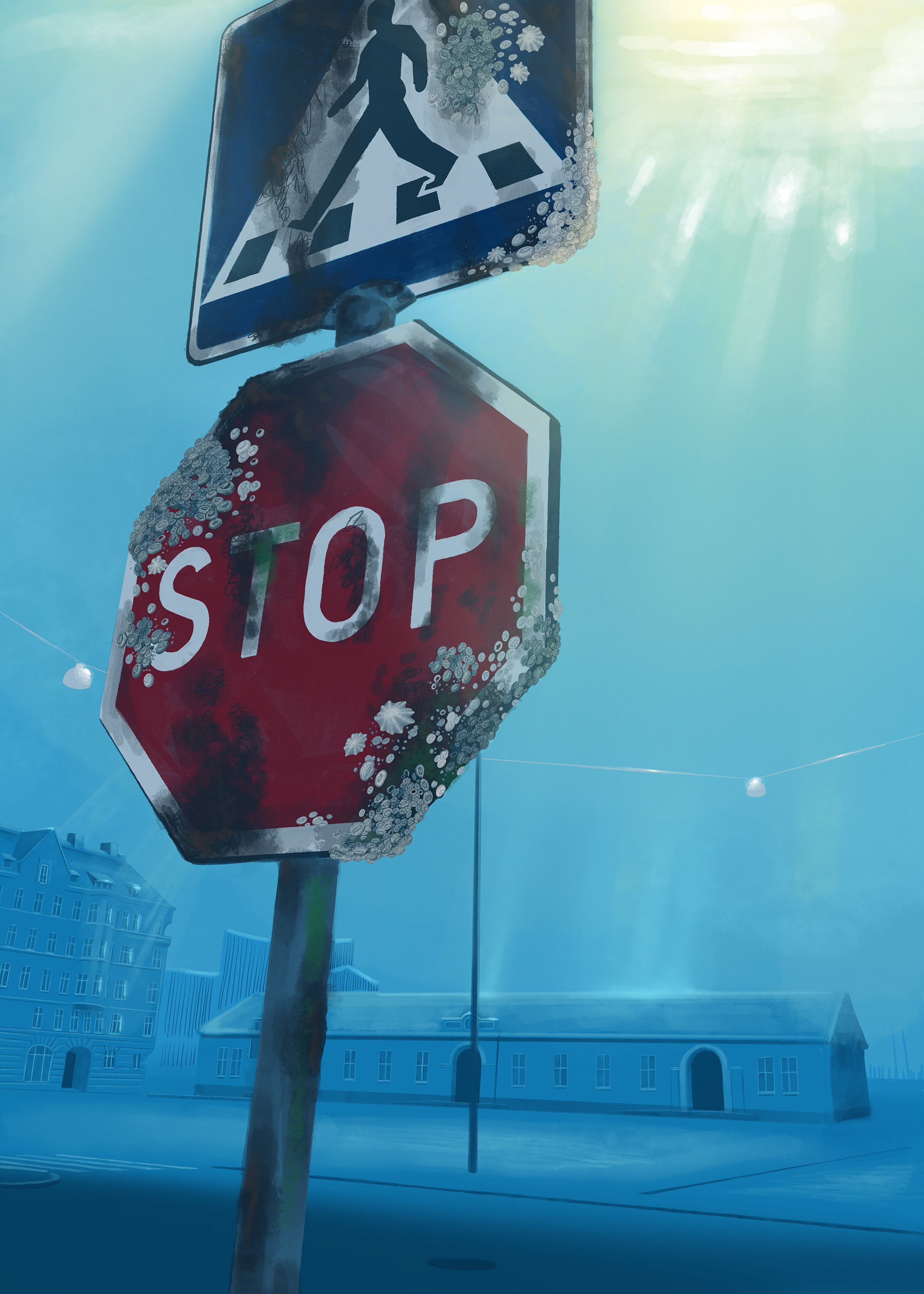 I boken ville jag skildra ett dystopiskt Malmö, långt under vattenytan, där havsdjur och koraller tagit över staden.