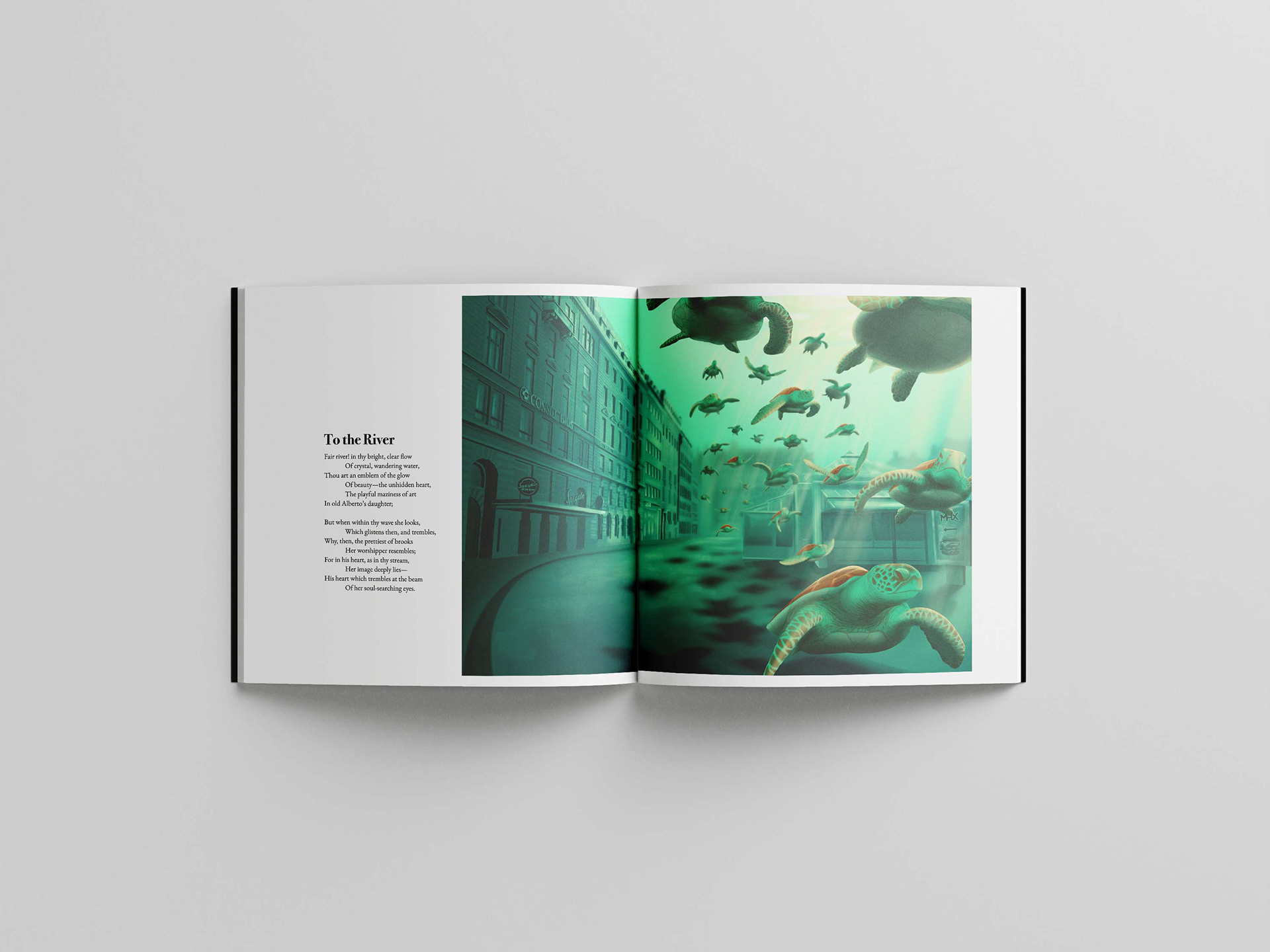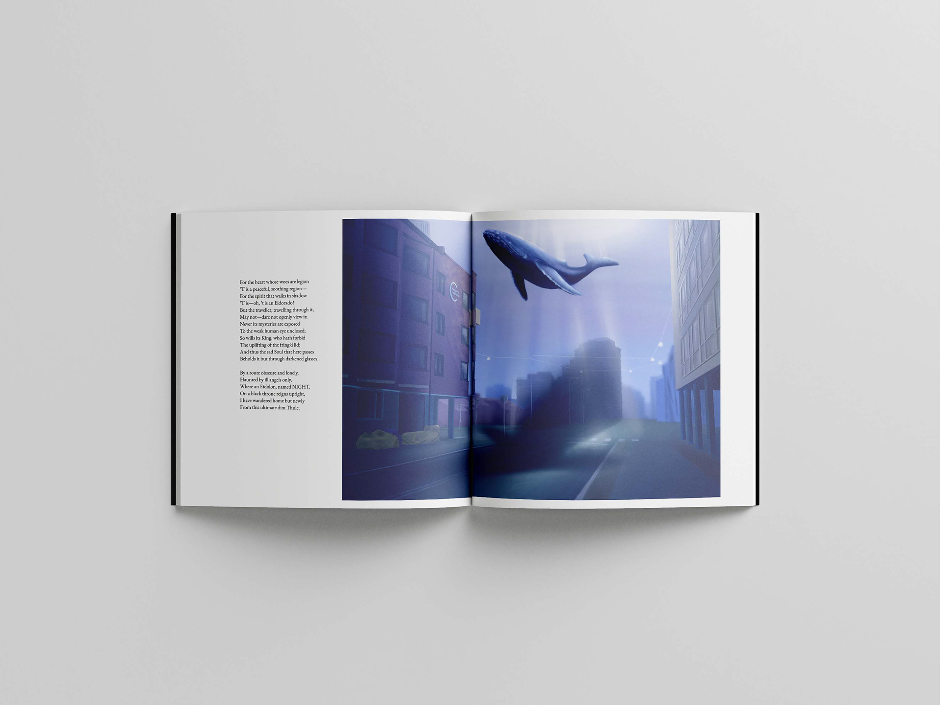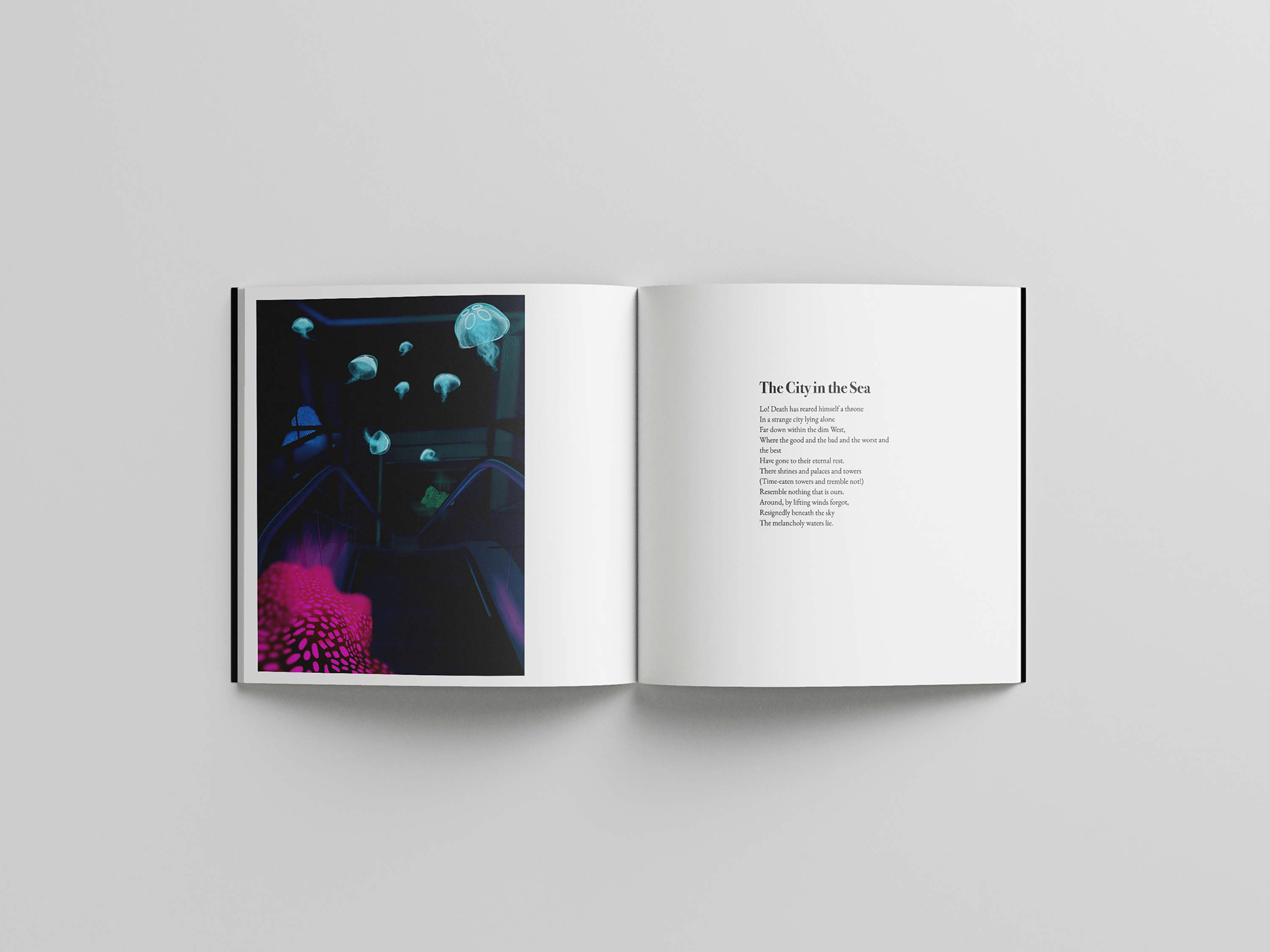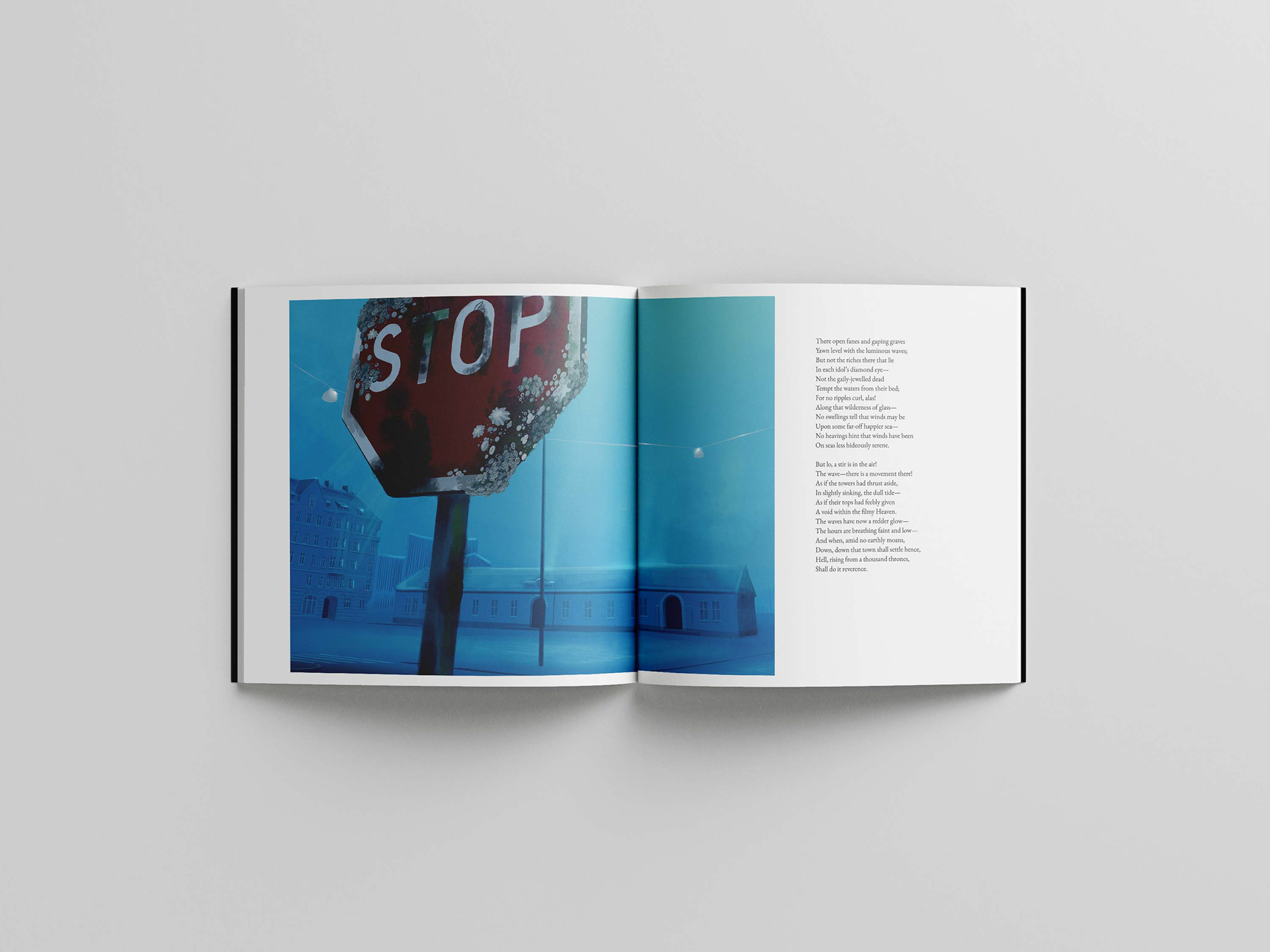 I boken har jag använt mig av Edgar Allan Poes dikter i kombination med mina illustrationer. En av dikterna heter The City in the Sea vilket fick bli bokens titel.